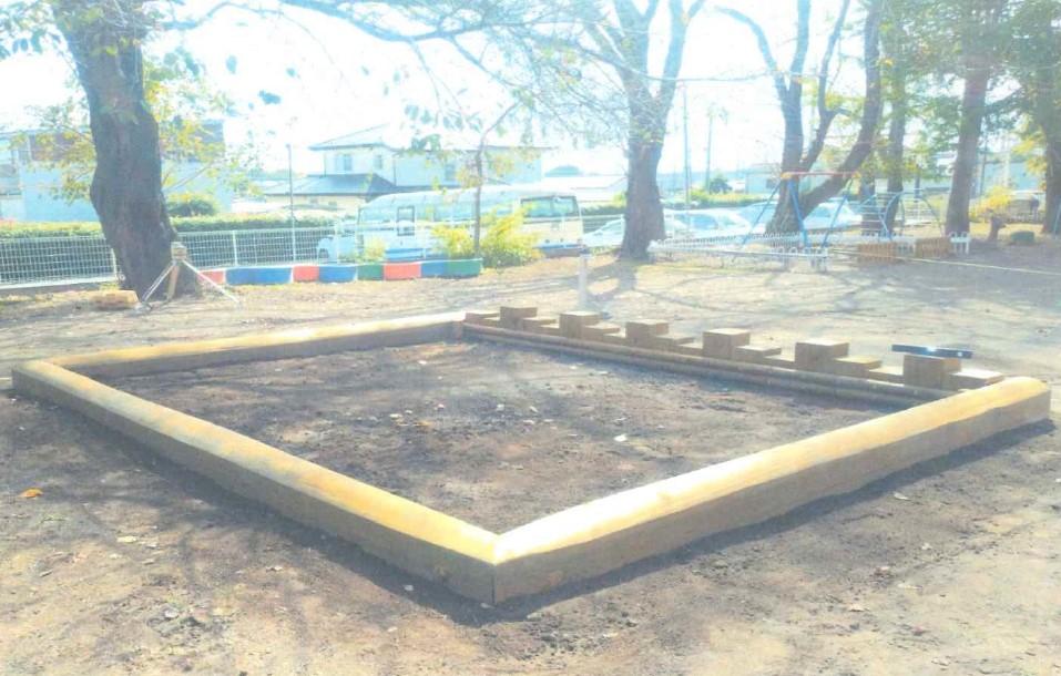 砂場の木枠が老朽化しており、園庭が安全に遊べない場面がありました。 共同募金の配分を受け、砂場の木…