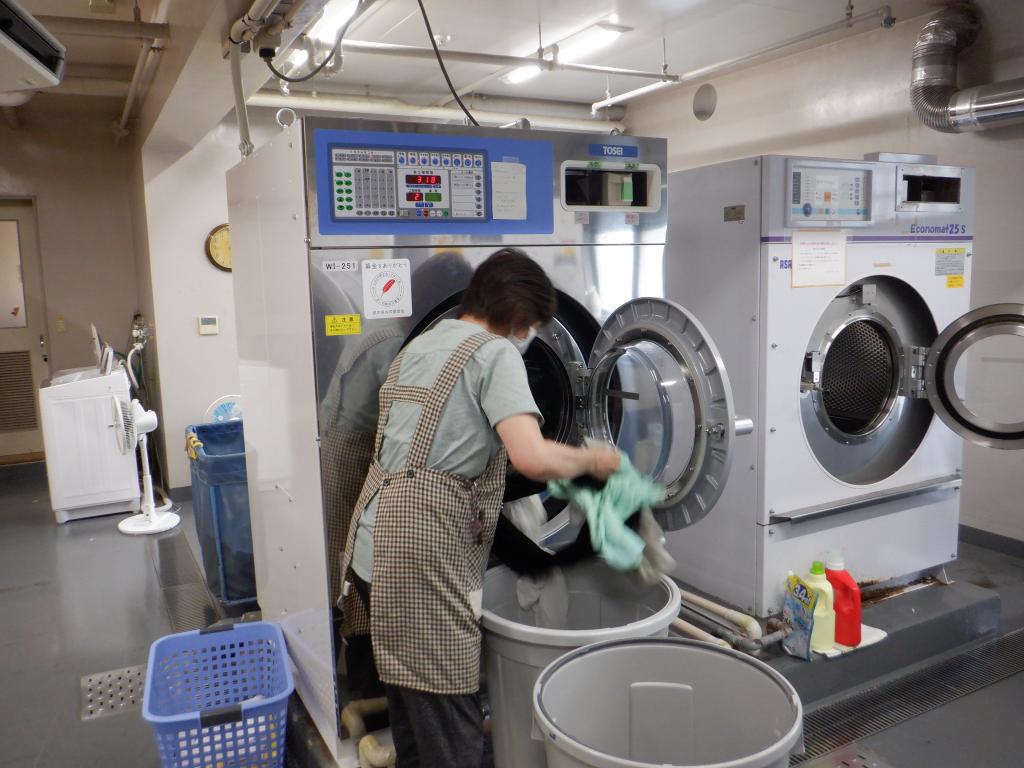 障害者支援施設光輝舎では、利用者さんの衣類や寝具を清潔に保つために毎日約50名分の洗濯を行っています…