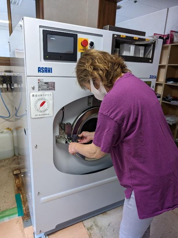 この度は、共同募金の配分により、業務用全自動洗濯機を購入する事が出来ました。 使用年数21年老朽化…