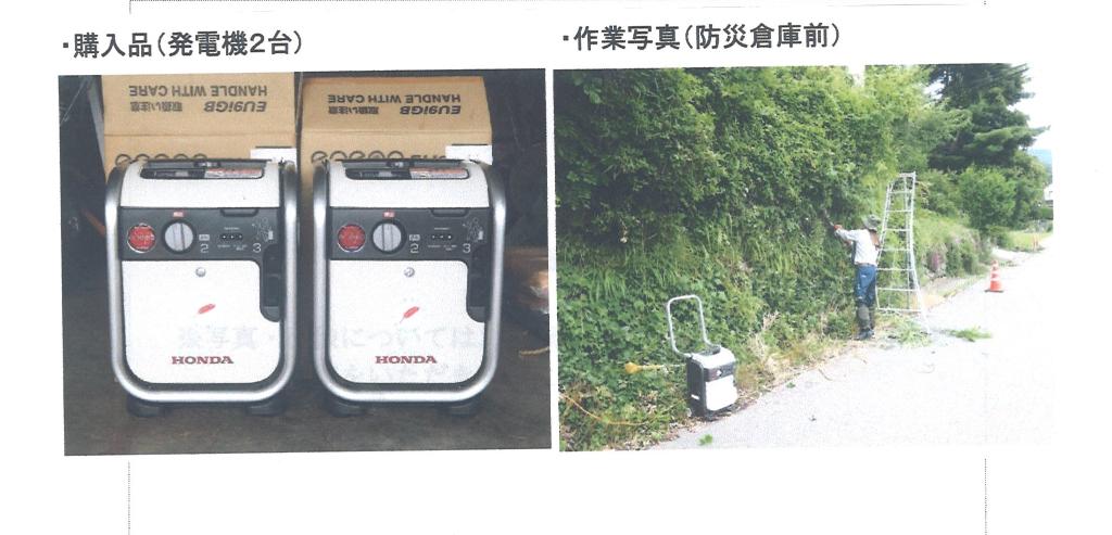 当町会への交付金で防災部品としての発電機を購入させていただきありがとうございました。災害発生時には効…