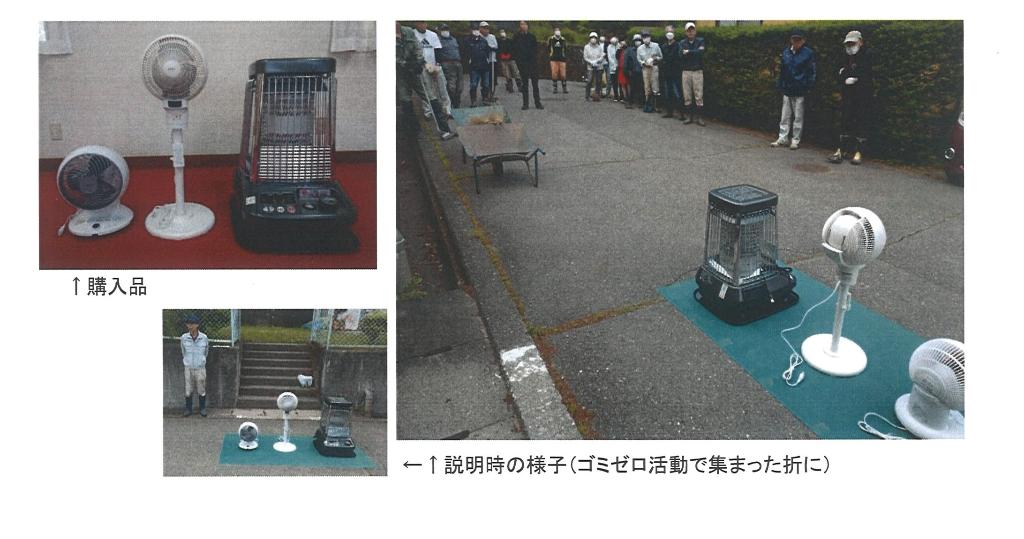 この度「安心・安全なまちづくり配分事業」からの配分にて石油ファンヒーターとサーキュレーターを購入する…