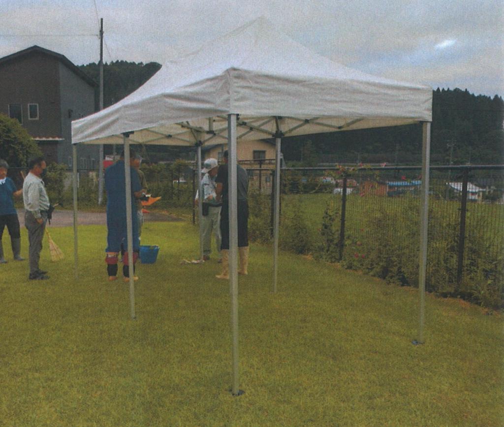 地区の文化祭に合わせ、公民館広場に防災テントの設営及び炊き出し訓練に使用及び前回いただいた発電機の取…