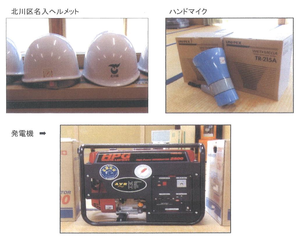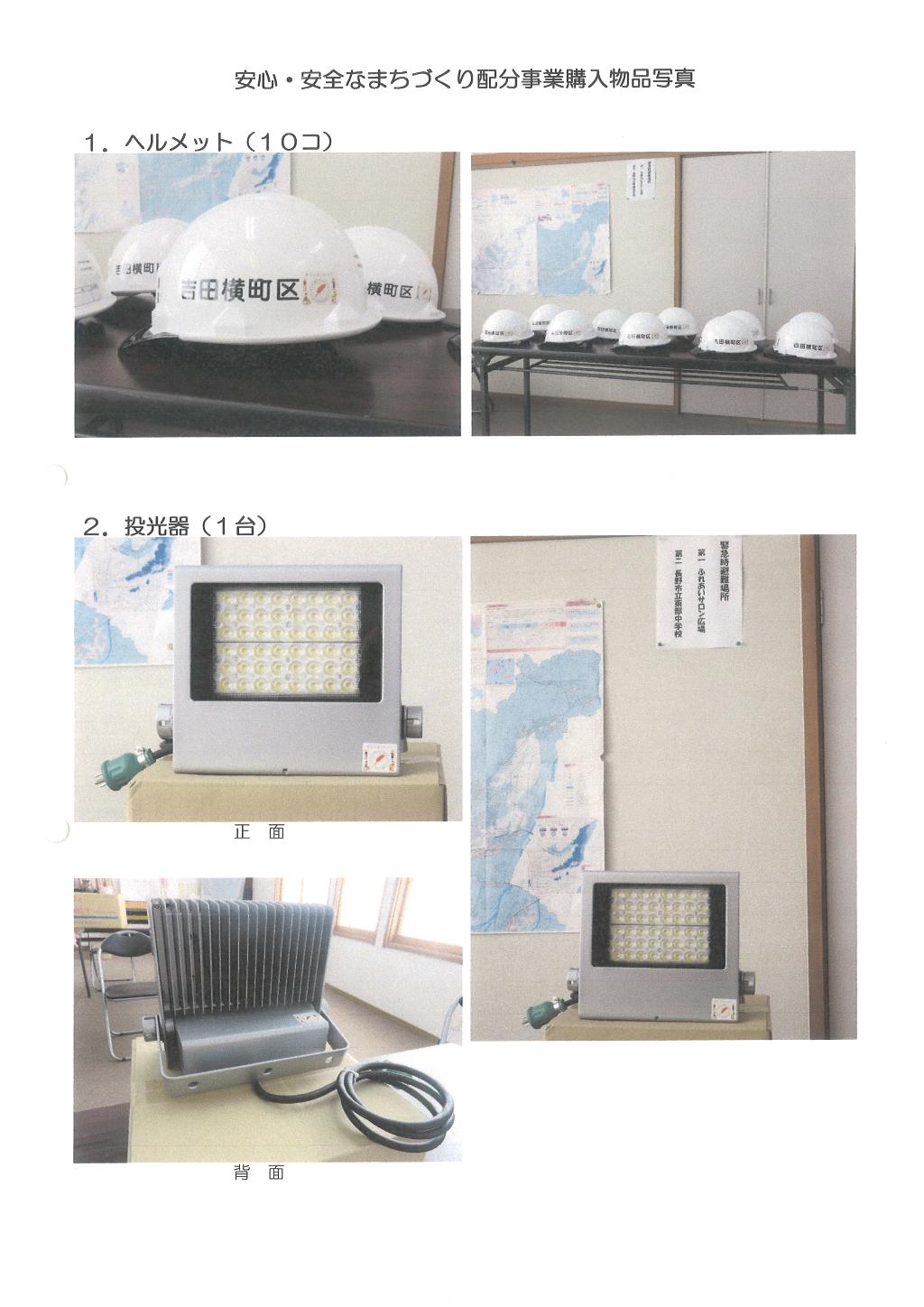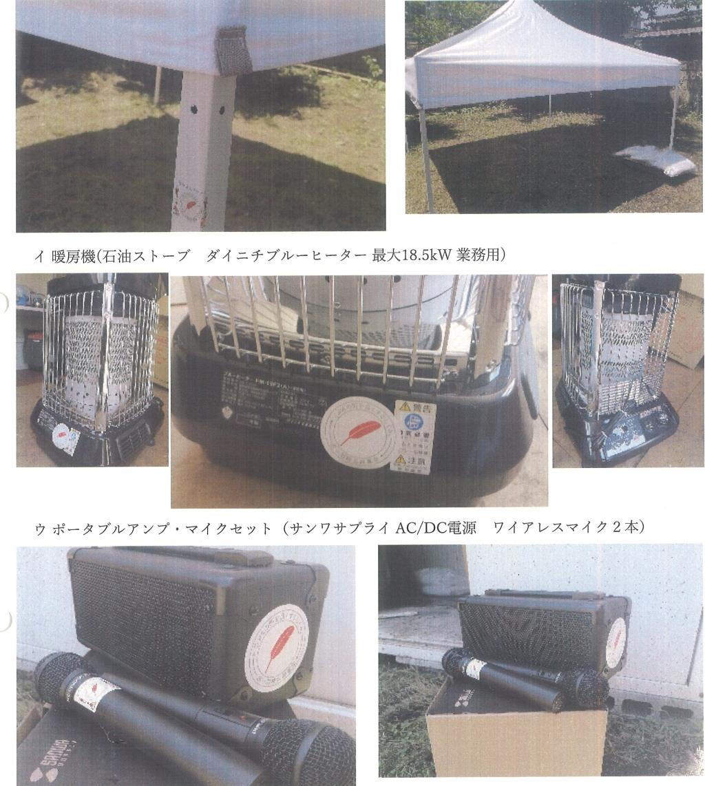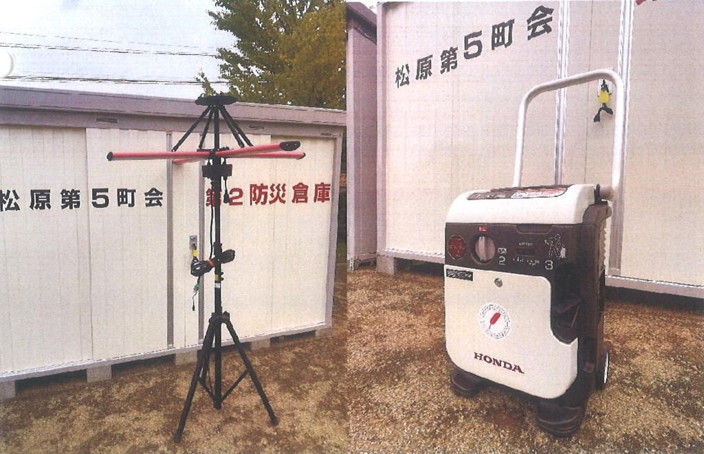稲荷区では「防災物品整備事業」として発電機1基、LED投光器2基及びヘルメット(各個1コ)整備するこ…