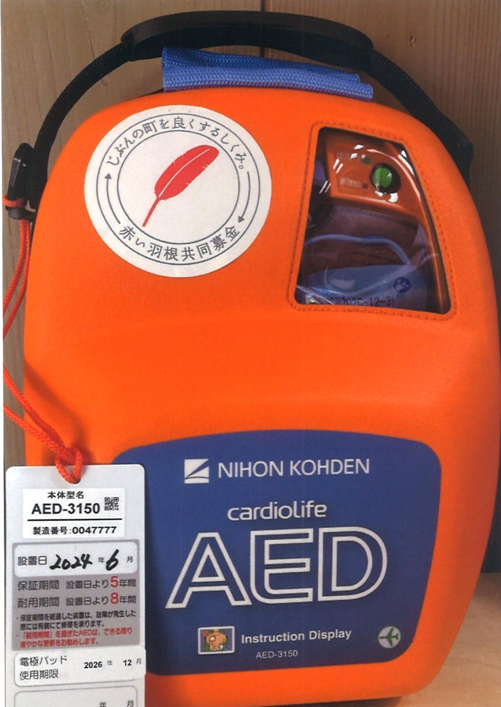 安心·安全なまちづくり活動公募配分事業によりAED を購入・設置をさせて頂きました。赤い羽根共同募金…