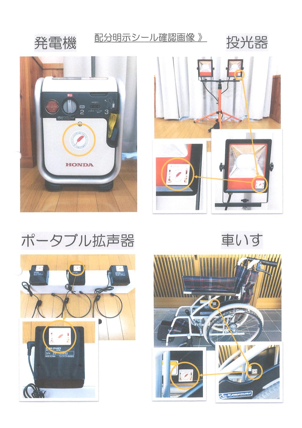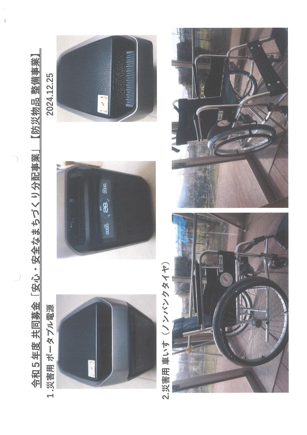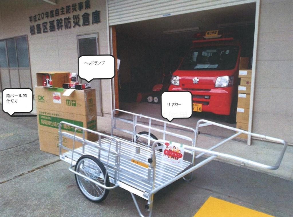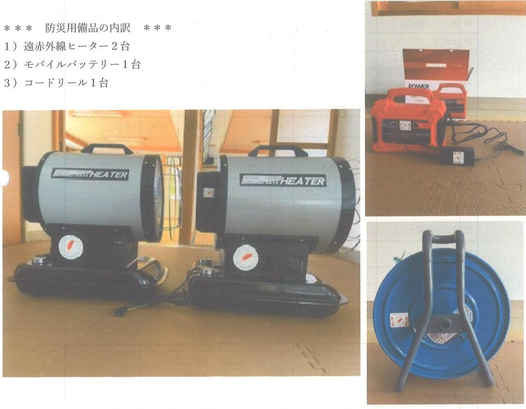 このたびは安心・安全なまちづくり配分事業で防災に対応する。備品等を購入することができました。防災に対…