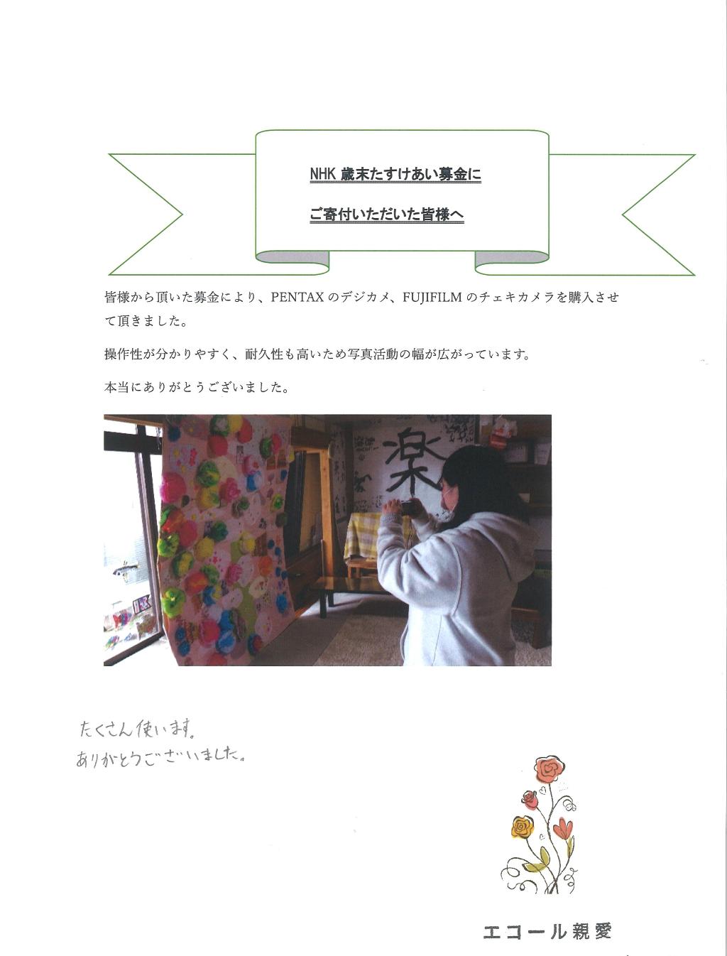 このたびは、寄付をありがとうございます。 おかげさまで、区の祭典や夏のレクリエーション事業において…