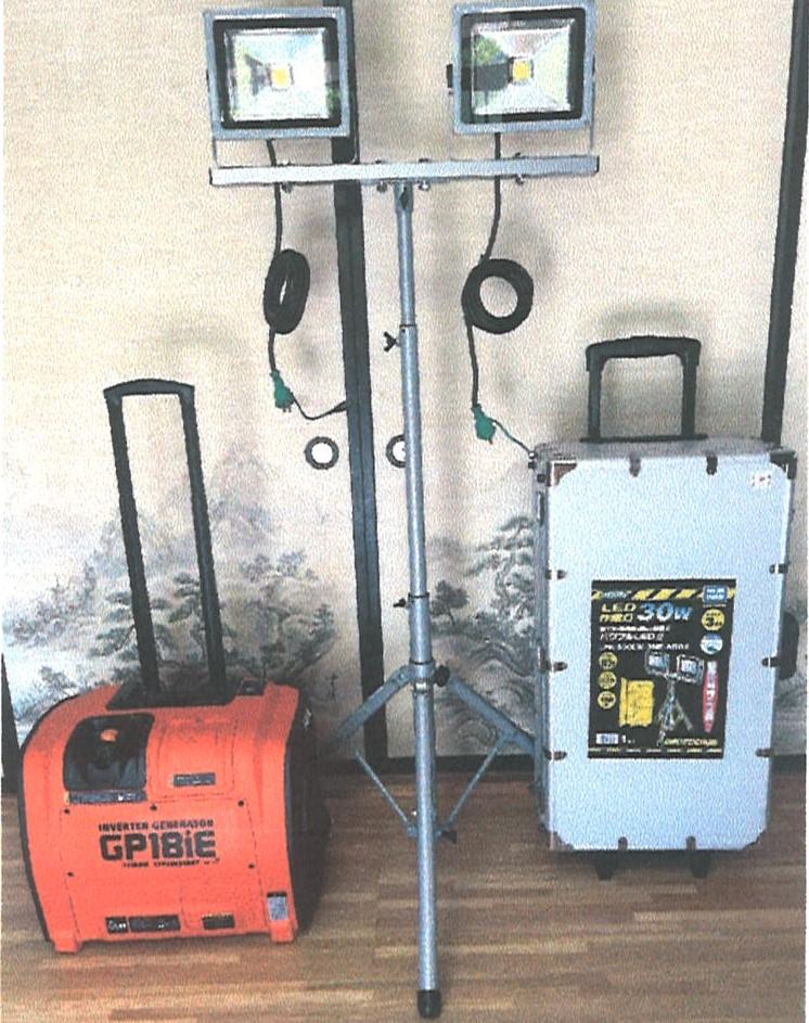 2019年の台風19号で、夜間の対応作業に際し発電機、投光器の必要性を感じ、防災備品としての備えを検…