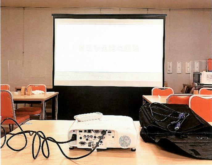 余暇活動の映画鑑賞に使用していたモニターは小さく、大勢で鑑賞するには視聴範囲が狭いため、共同募金の…