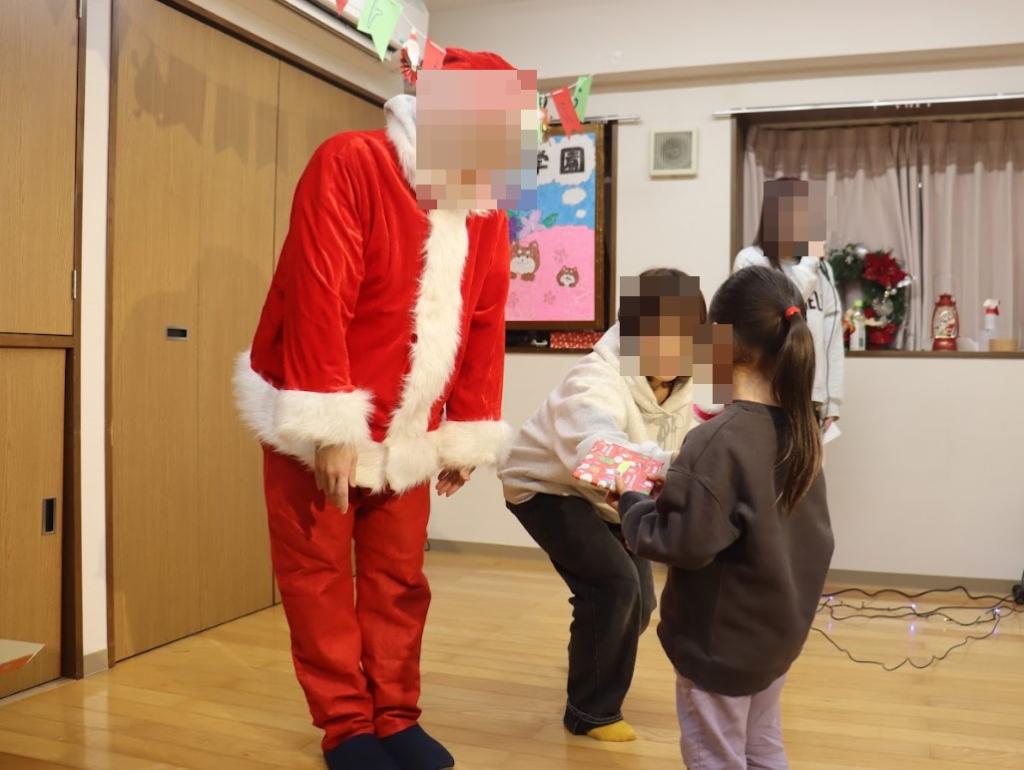 寄付をいただいた助成金でクリスマスプレゼントを購入させていただきました。 サンタさんから直接手渡し…