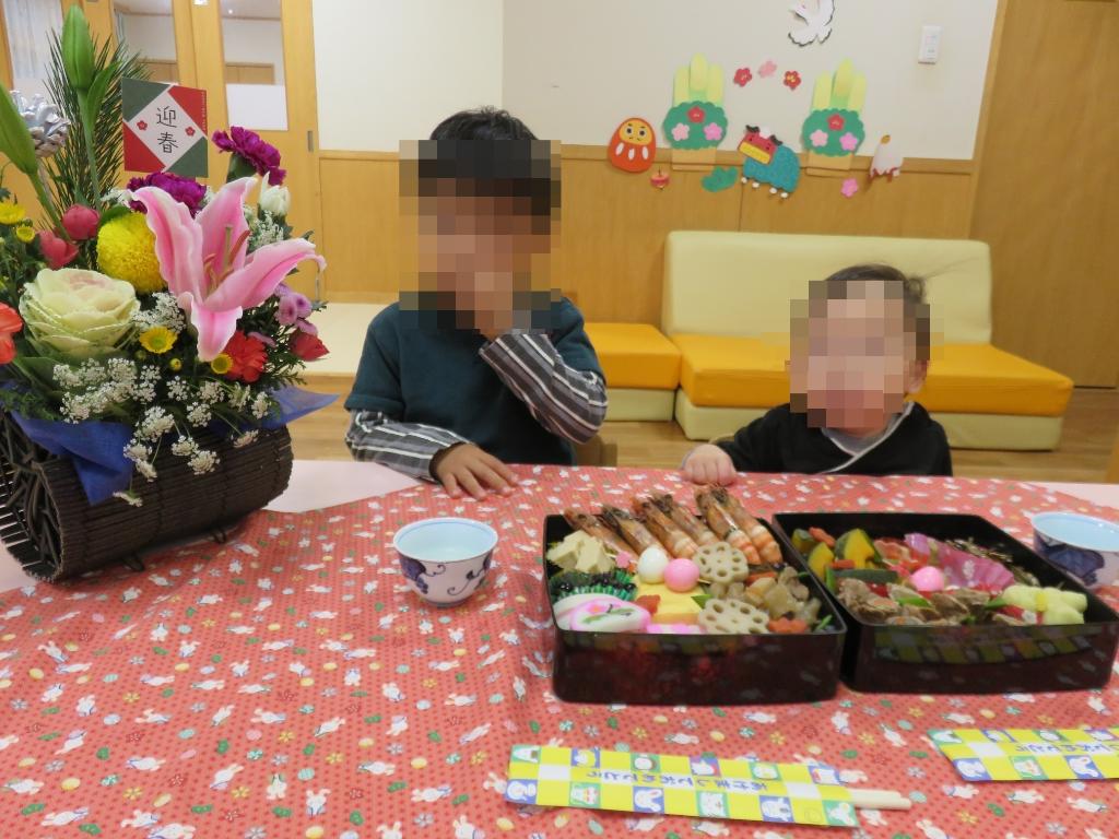 今年も昨年同様、各ホームごとにおせちを作りました。 園全体で各料理を持ち寄り、みんなで詰めることも…