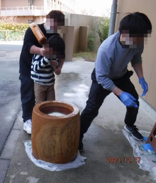 2023年12月27日、すがすがしい晴れの中で餅つき大会が実施されました。 子どもたちも多数参加し…