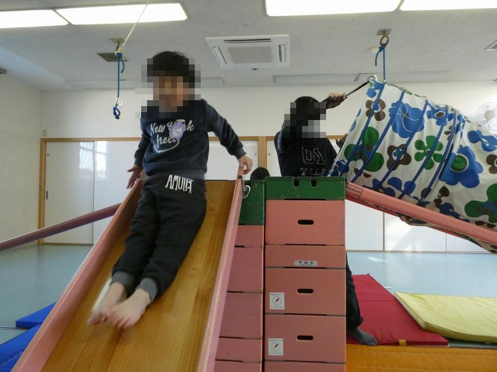 クリスマス会でサンタさんからのプレゼントとしてピンクの巧技台をもらいました。 新しい巧技台に滑り台…