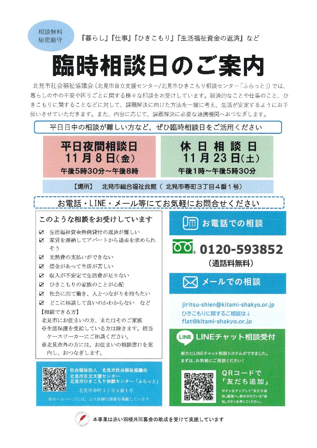 生活に困りごとを抱える住民は、お金がなく電話による相談を躊躇する方は少なくありませんが、赤い羽根共同…
