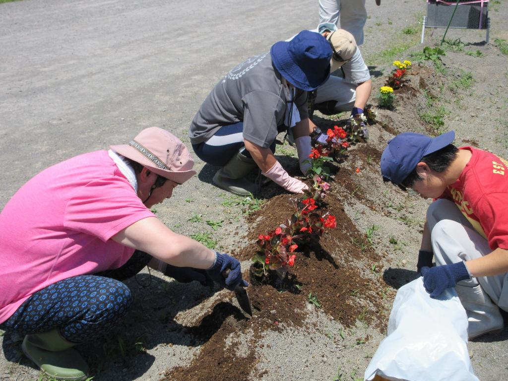 町内の老人クラブや福祉施設等14団体に、花壇整備のための花苗と土を配布しました。景観美化や参加者同士…
