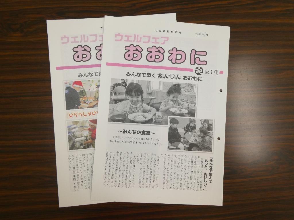 地域福祉の理解、事業等の情報提供のための社協広報紙「ウェルフェアおおわに」を毎戸配布しました。大鰐町…