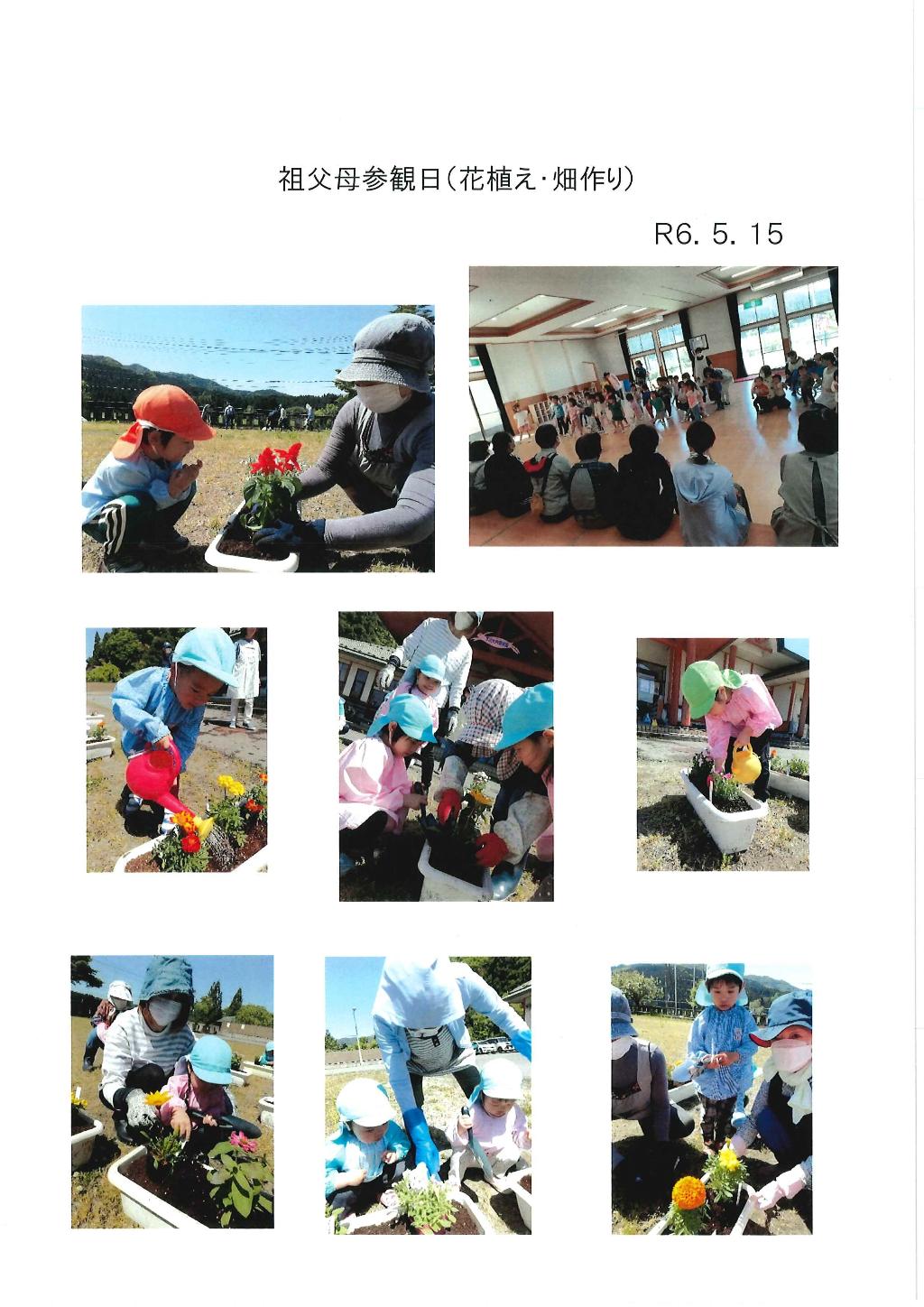 助成金により、祖父母参観日を実施することができましたことに感謝しております。畑に植えるさつま芋苗や野…