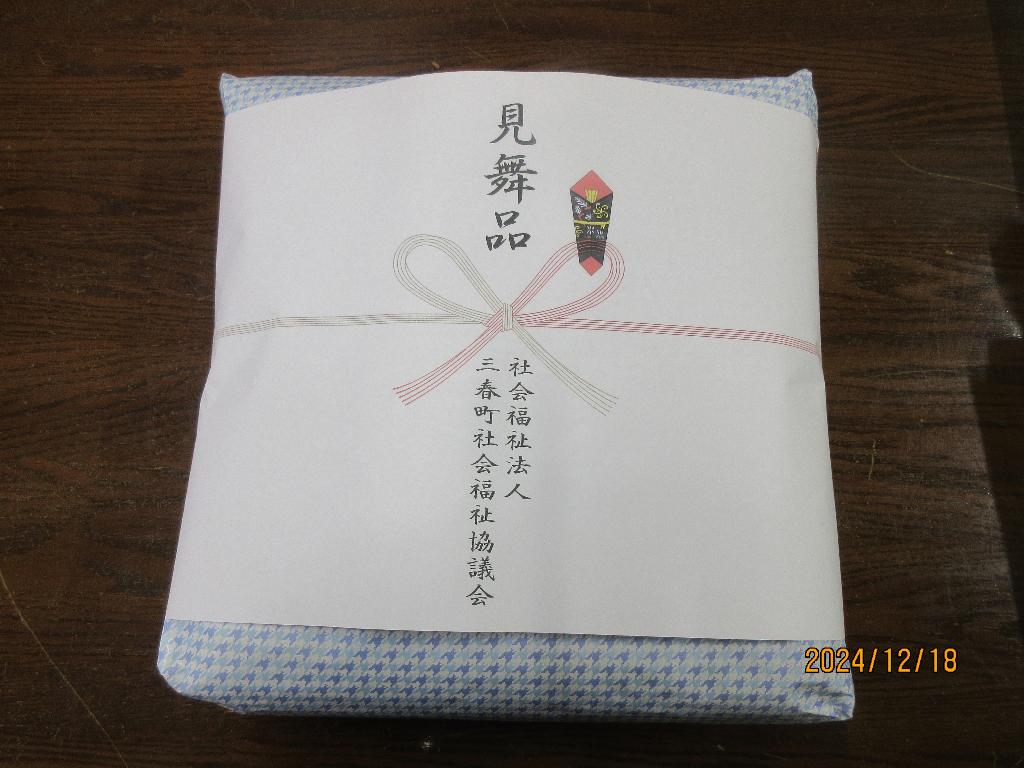 この事業は、三春町内にお住まいの寝たきり要介護者に見舞品を贈呈するものです。 今年度は、18名の方…