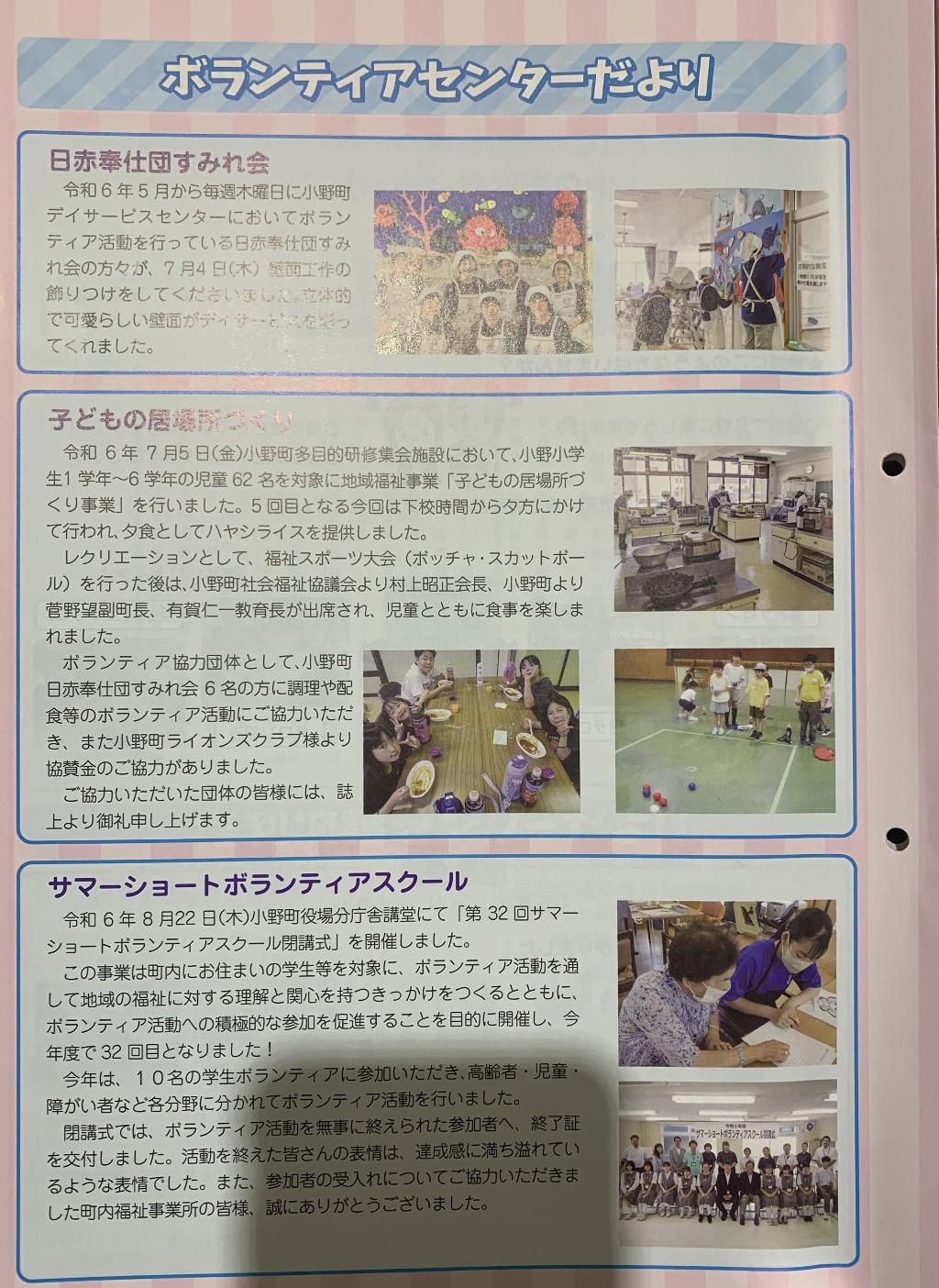 小野町社会福祉協議会が発行する社協だよりの作成費用として、貴重な財源として広報活動に活用させていただ…