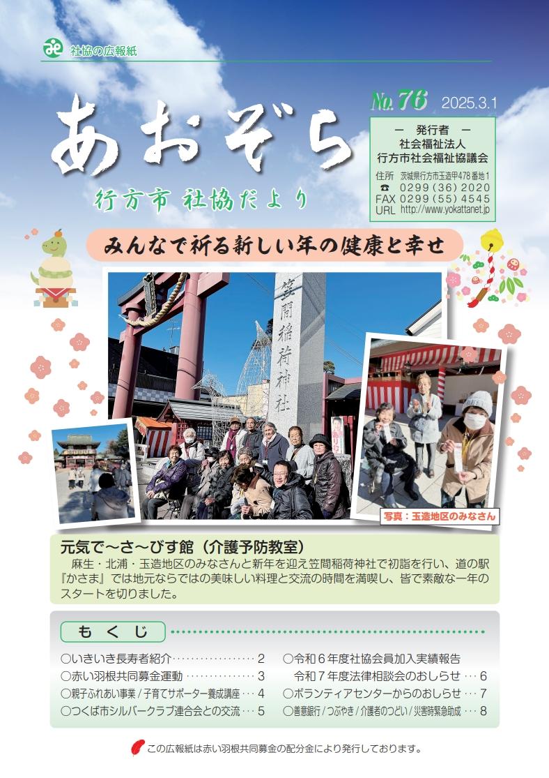 行方市社会福祉協議会広報紙「あおぞら」を発行することができました。 ボランティア情報を始めとした地…