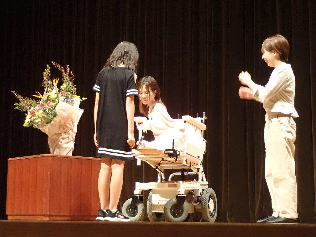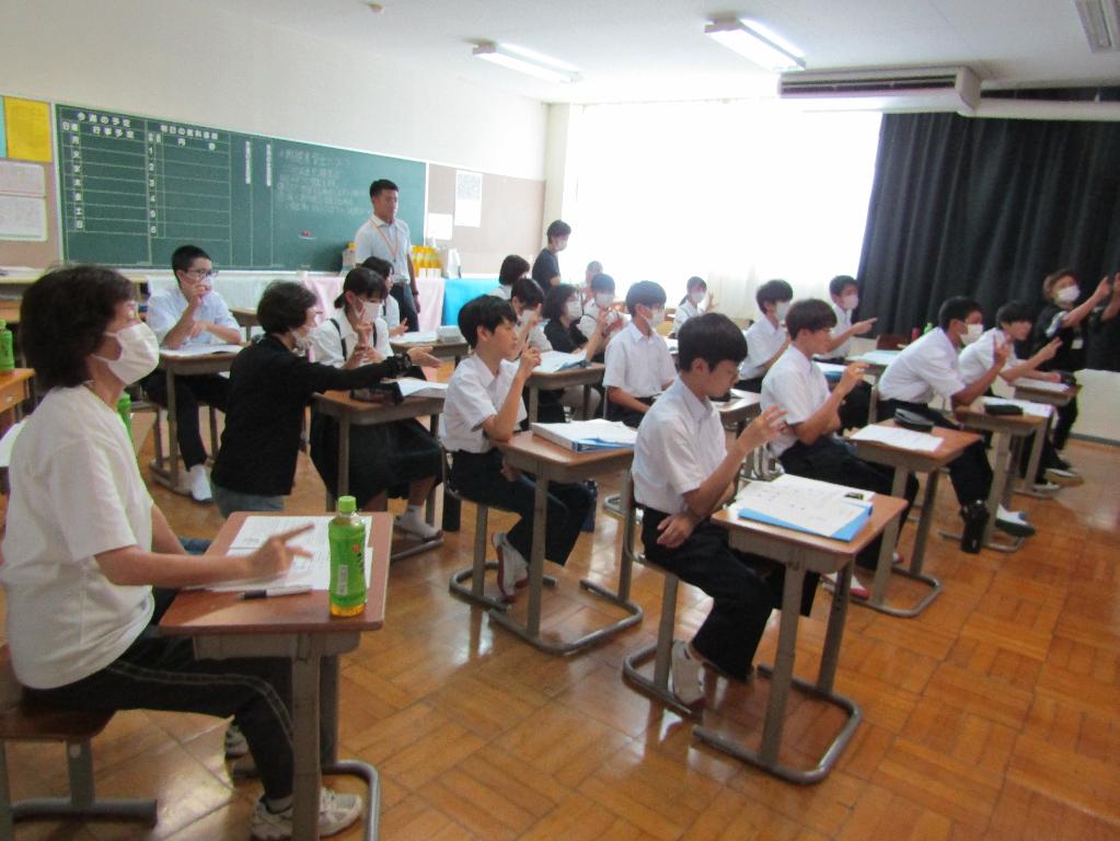 人権集会として聴覚障害をもつ松井智恵先生をお迎えして、全校生徒と保護者、教職員でお話を伺いました。手…