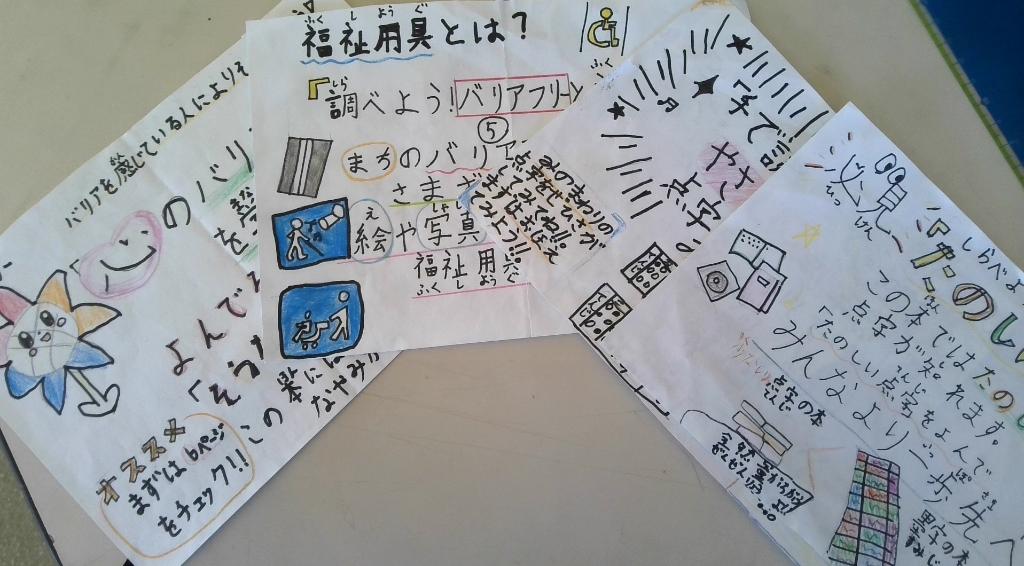 4年生の総合的な学習の時間「みんなの町づくり」の学習として、本やパソコン、インタビューを通して福祉に…