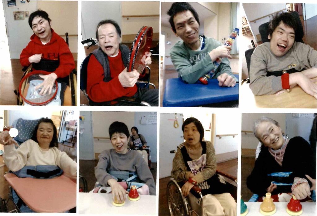 入居者全員がピアノを演奏して合わせ、各々の楽器を使ってリズムや調子を合わせる中で、感情表現・自己表現…