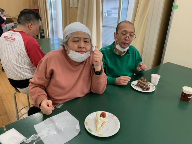 いぶきの広場利用者とボランティア、職員全員で昼食とケーキを食べ、ゲームで楽しみ、久々に楽しい1日を過…