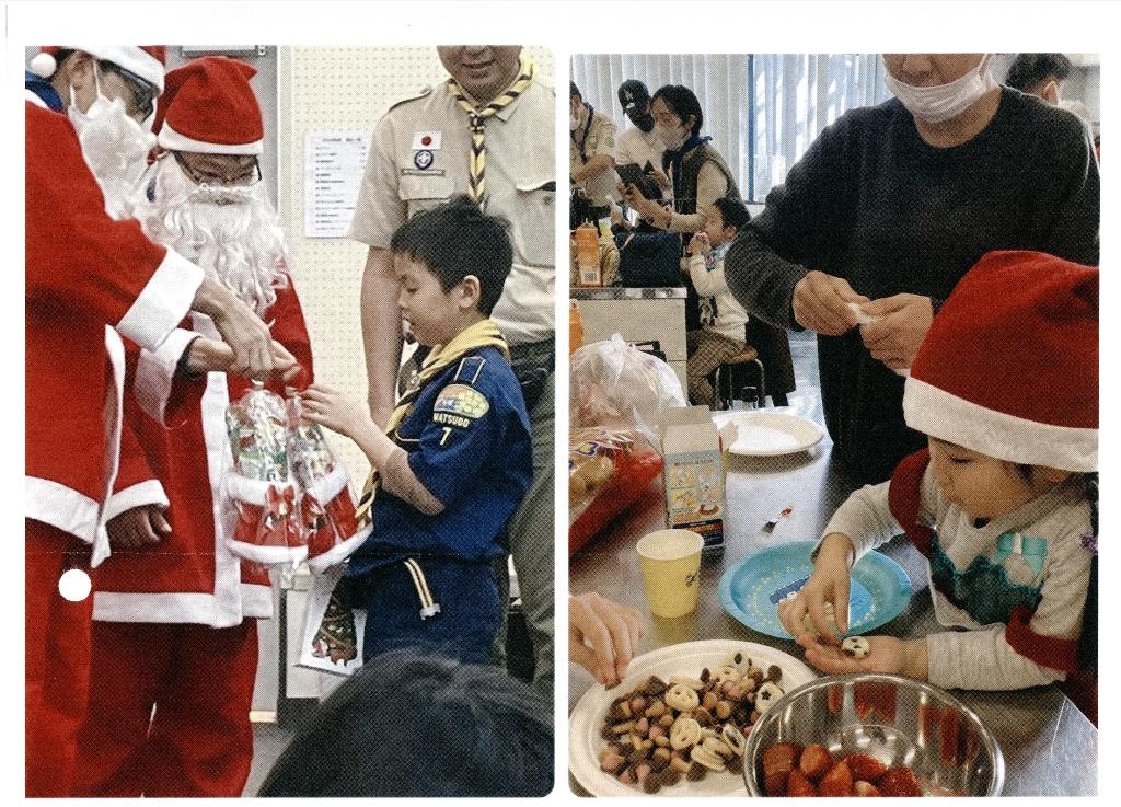 スカウト達がリーダーと共に調理をしたり、サンタクロースからプレゼントをもらったり、楽しく有意義に過ご…