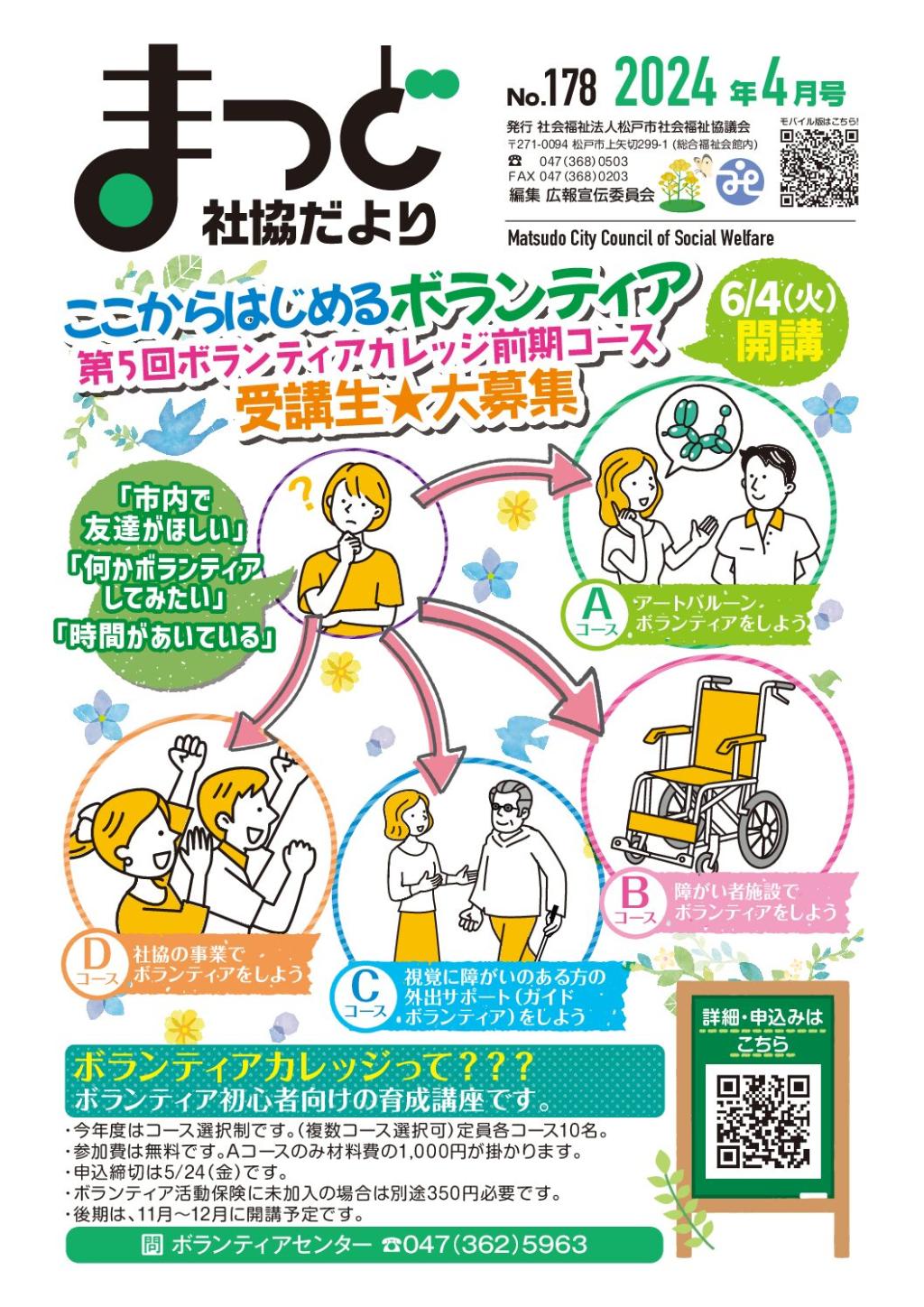 ボランティアセンターでは、ボランティア活動をしたい人と支援を求める人を結ぶコーディネートを行うほか、…