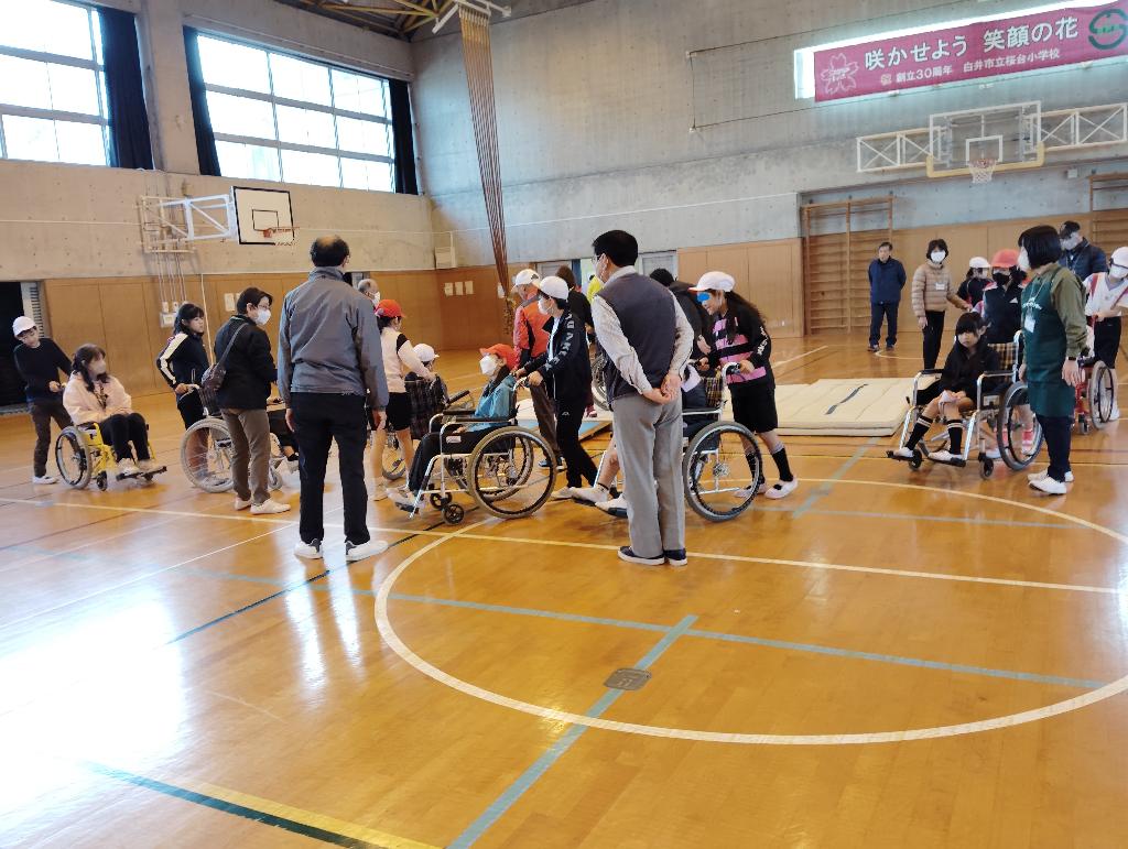 小学4年生対象「福祉勉強会」、白井中学校「福祉体験」において、車イスや高齢者疑似体験等を実施しました…