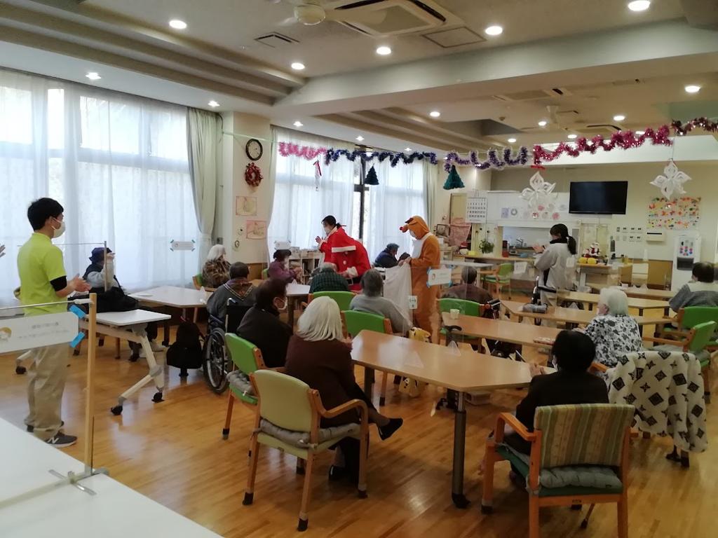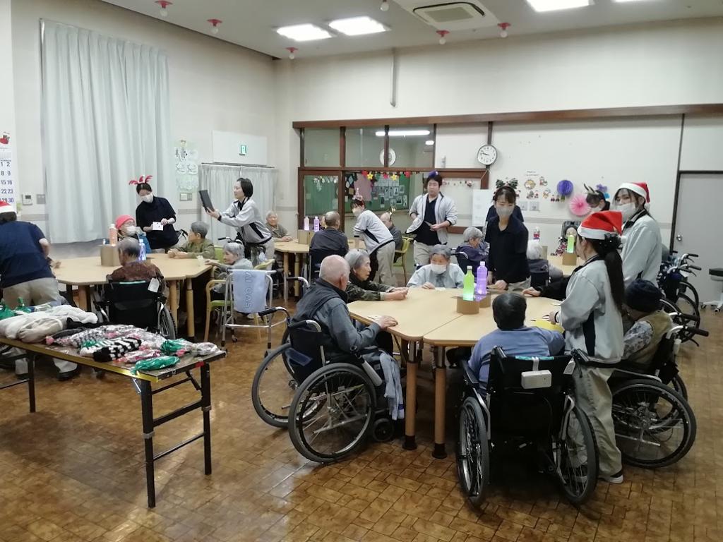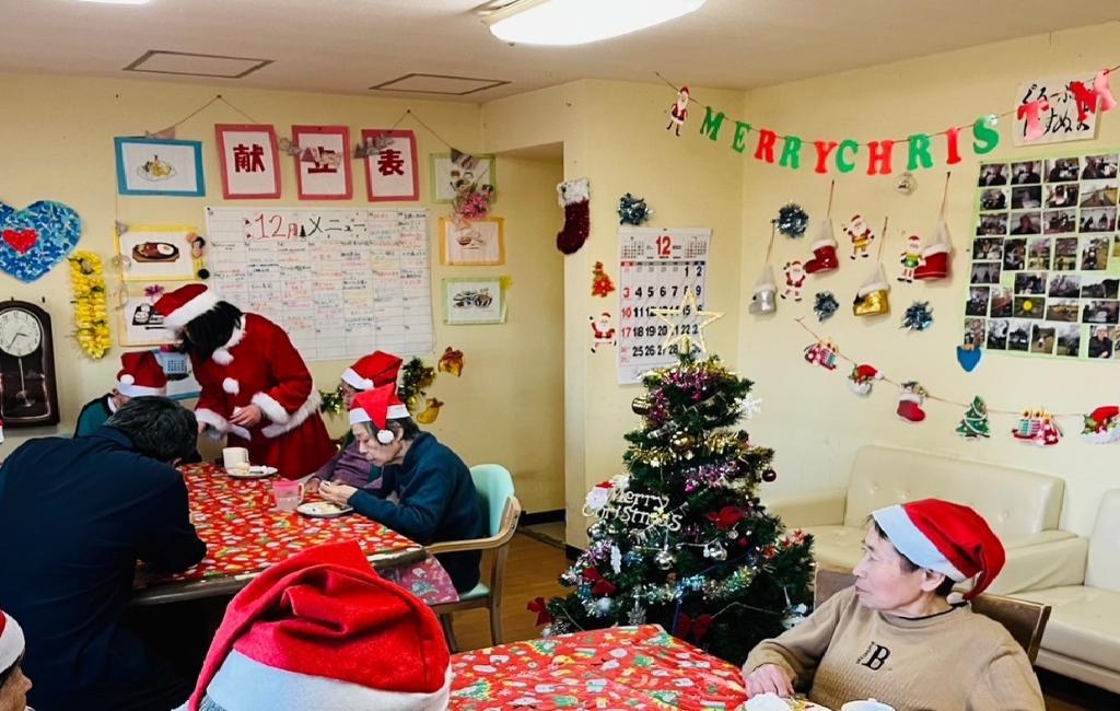 コロナ禍の昨年はできなかったクリスマス会で華やかな雰囲気を利用者に味わっていただき、楽しいひとときを…
