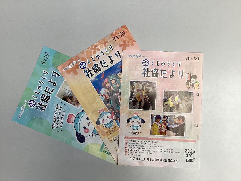 「くじゅうくり 社協だより」を年に3回発行しています。社会福祉協議会の広報紙を発行することで、町民の…
