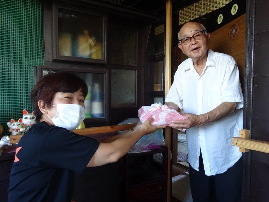 敬老の日の時期に実施する「おうちで敬老サマー舌鼓」。町内80歳以上の一人暮らし高齢者を対象に、給食ボ…