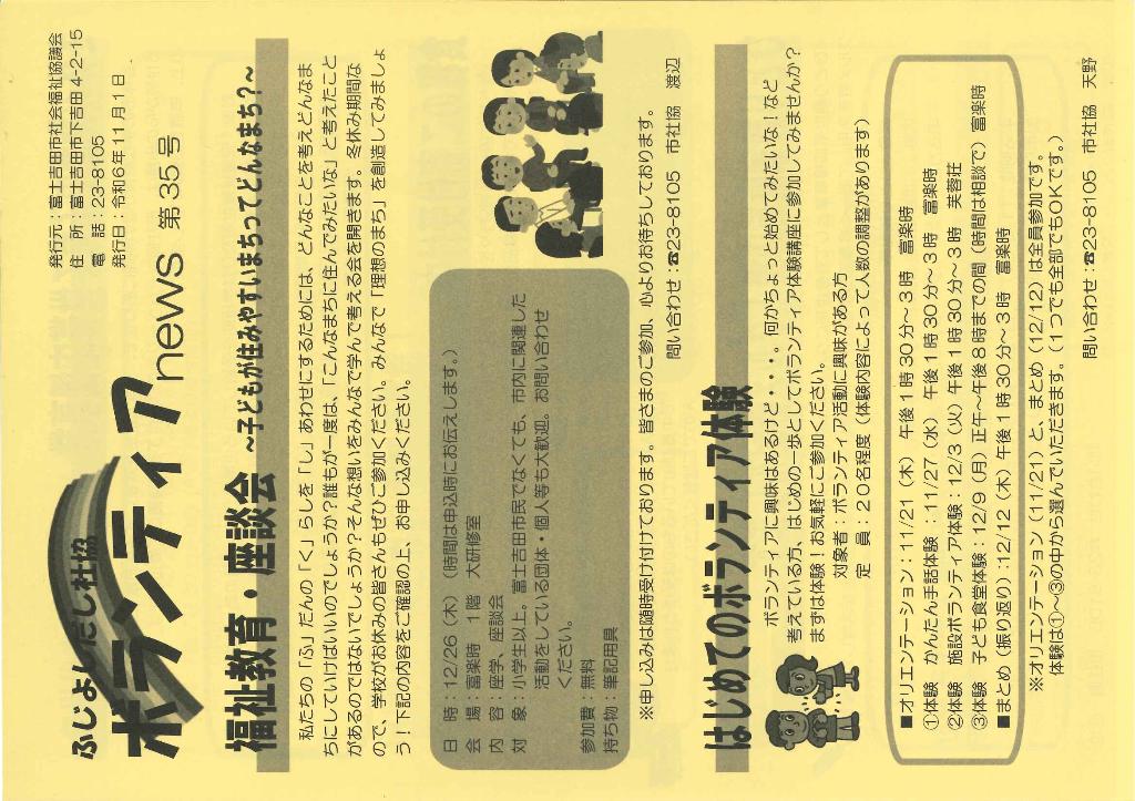 ボランティア関連の情報誌として、市内全戸に配布しており、掲載記事について市民の皆さんから問い合わせを…