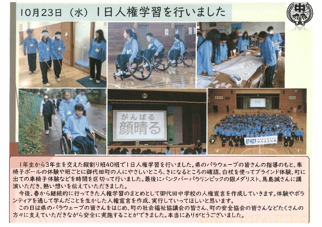 【中学校より】今回は、すべての町民が安心安全に活用できるまちづくりの一環として、町の安全でない場所を…