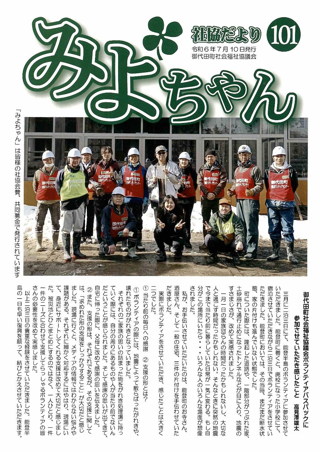 御代田町の福祉の意識向上を図るために社協だより「みよちゃん」の発行をしています。地域のボランティアが…