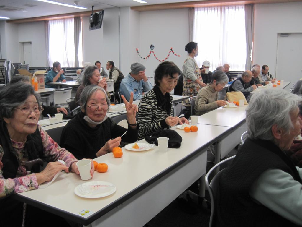 12/25真砂町公会堂でクリスマス会を行いました。踊りの先生であり、いつもの参加者の方の踊り、隣の町…