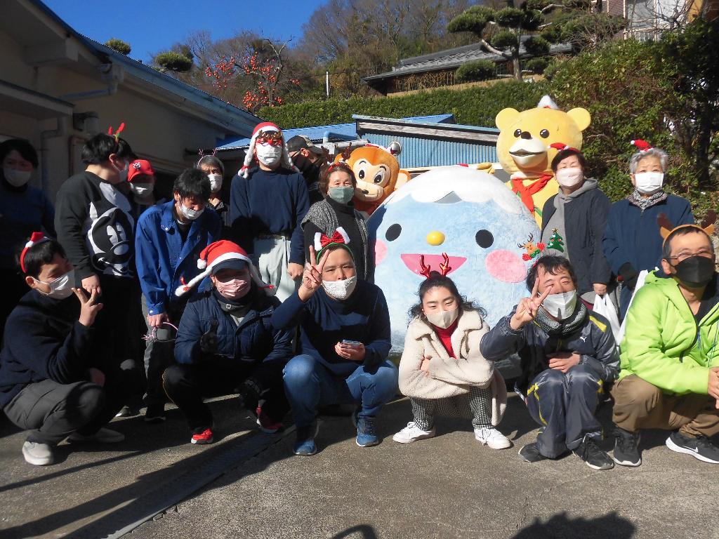 12/22、多比工房にもサンタクロースがやってきました。袋一杯のお菓子やケーキ、チキンとともに。近隣…