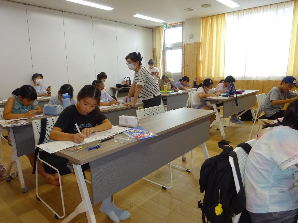 長期休み中に宿題ルームを行っています。教員OBのボランティアの方たちにわからないところを教えてもらい…