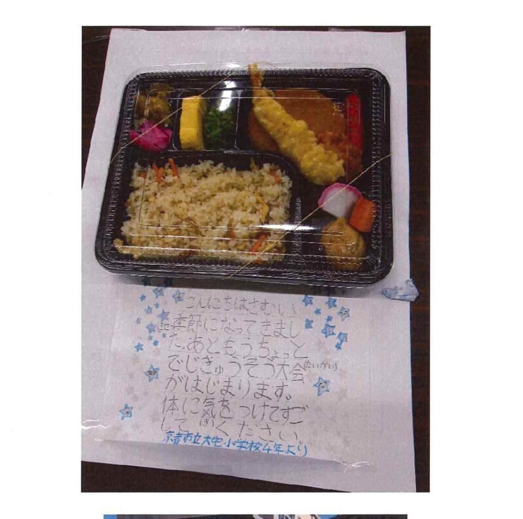 お手紙いただきました。(「椥みんカフェ」の皆様お世話様です。たった1個のお弁当ですがたのしみに!!)…