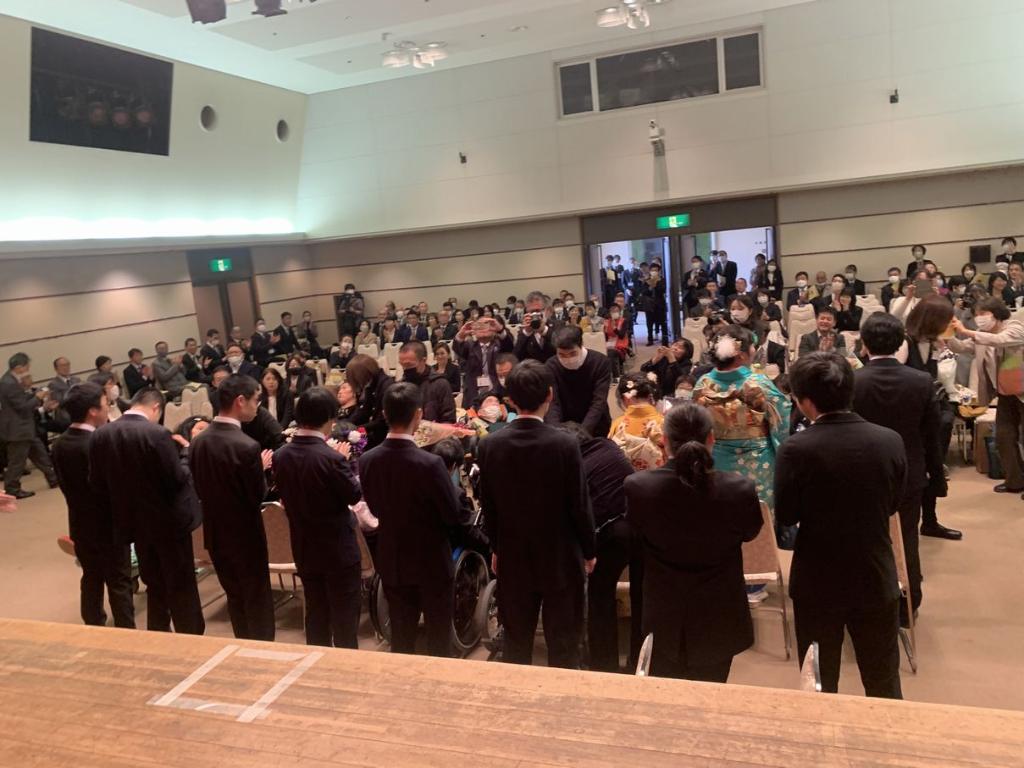 4年ぶりに人数制限を設けずに開催ができ、会場はお祝いに駆け付けた人たちでにぎわいました。新成人17名…