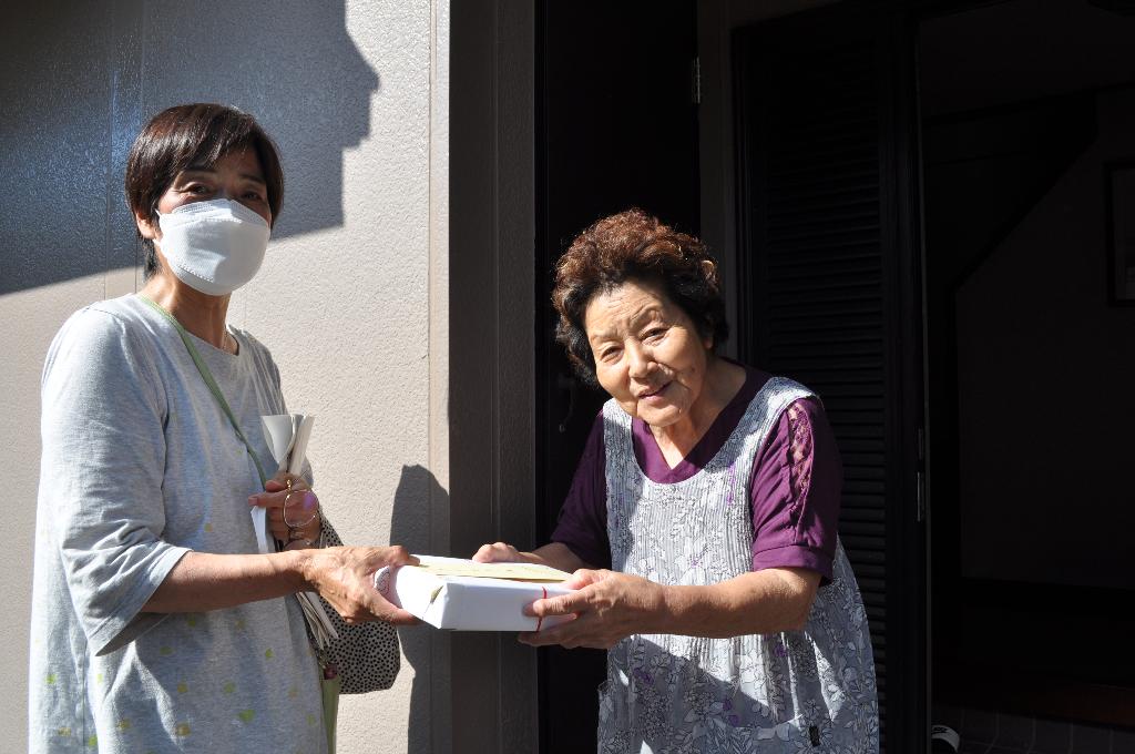 社協支部長が88歳を越えた皆様のお宅を一軒ずつ訪問し、共同募金が使われていることを添えたメッセージ、…
