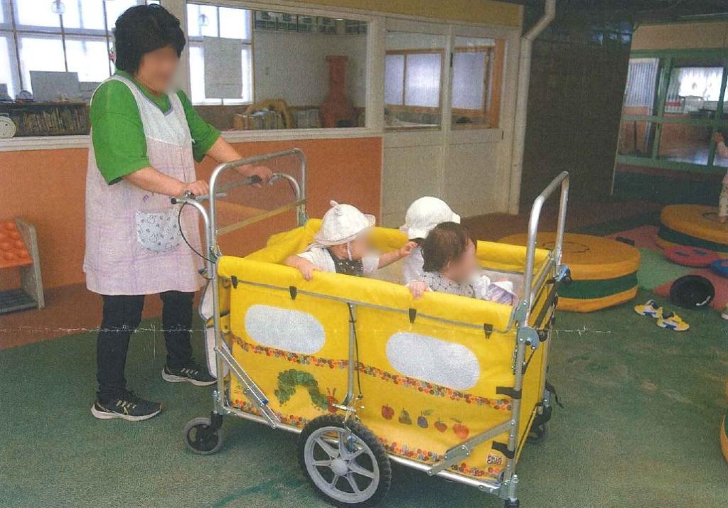 助成金を活用し、避難車を購入しました。災害時に一度に数人の園児を安全に避難させることができ、普段はお…