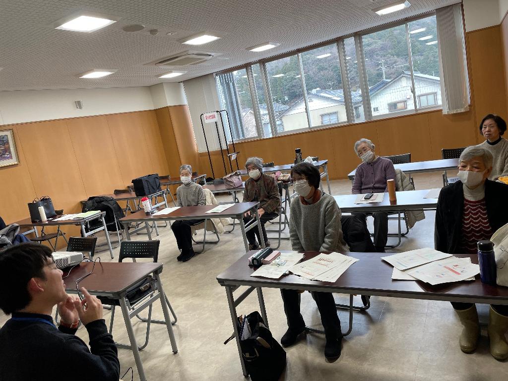 奥佐津地区の高齢者が毎月1回集まり、交流をしています。町内業者の協力も得て、買い物の機会の提供を行う…