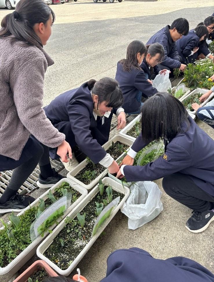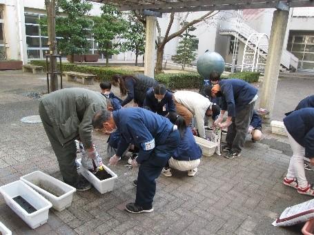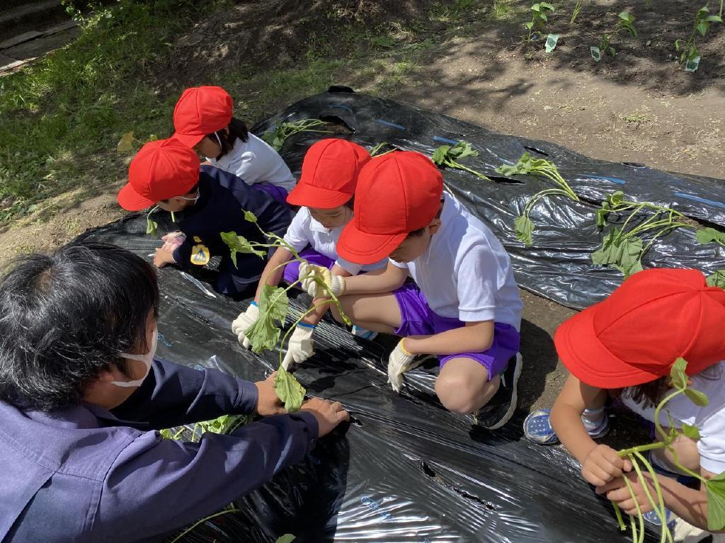 地域の方々にご協力いただき、作物を育てることができた。教職員は、土や畝の作り方からご指導いただき、児…