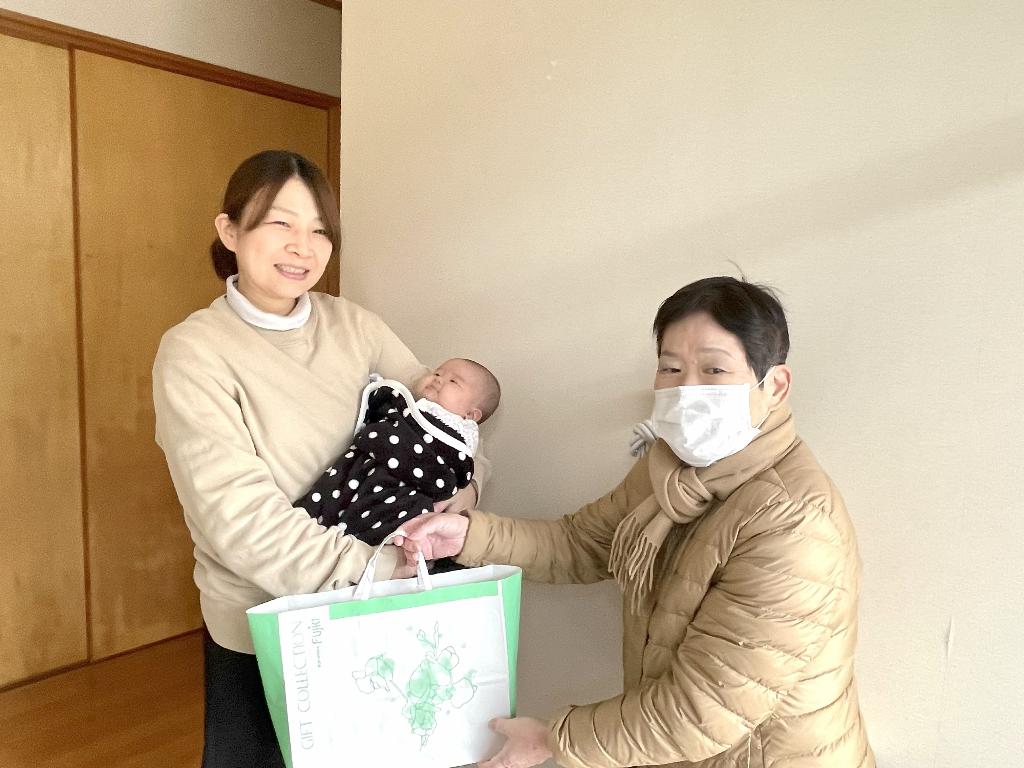 新生児の誕生を町をあげてお祝いするとともに民生委員の協力のもとご家庭に訪問しました。 Iターンが多…