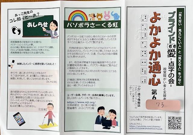 年に2回程、視覚障がい者と支援者の会にて、よかよか通心を発行しています。 文中に置いての記事は…