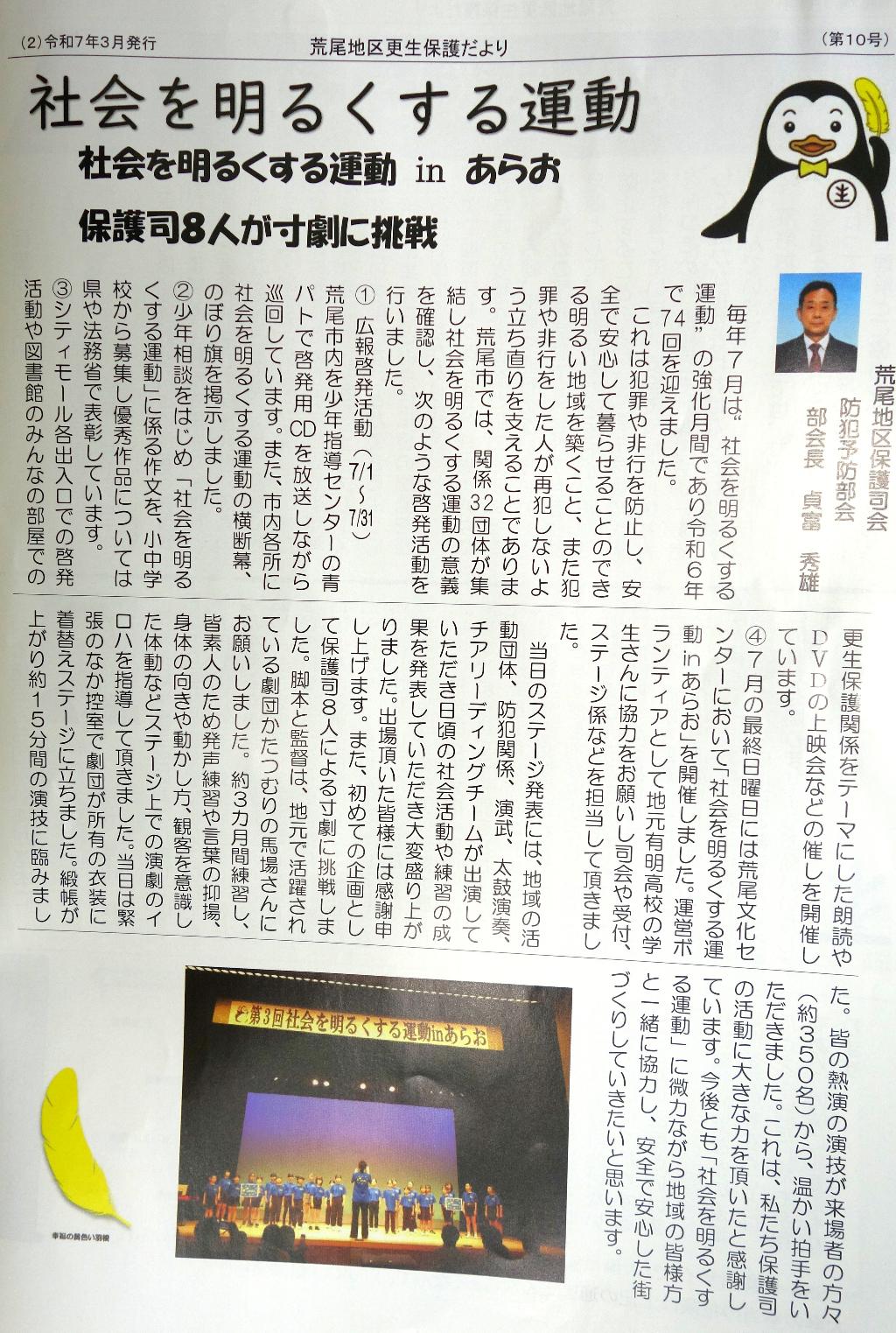犯罪や非行のない安全・安心な地域社会となるよう今後も努力を続けてまいりますので、市民の皆様方の更生保…