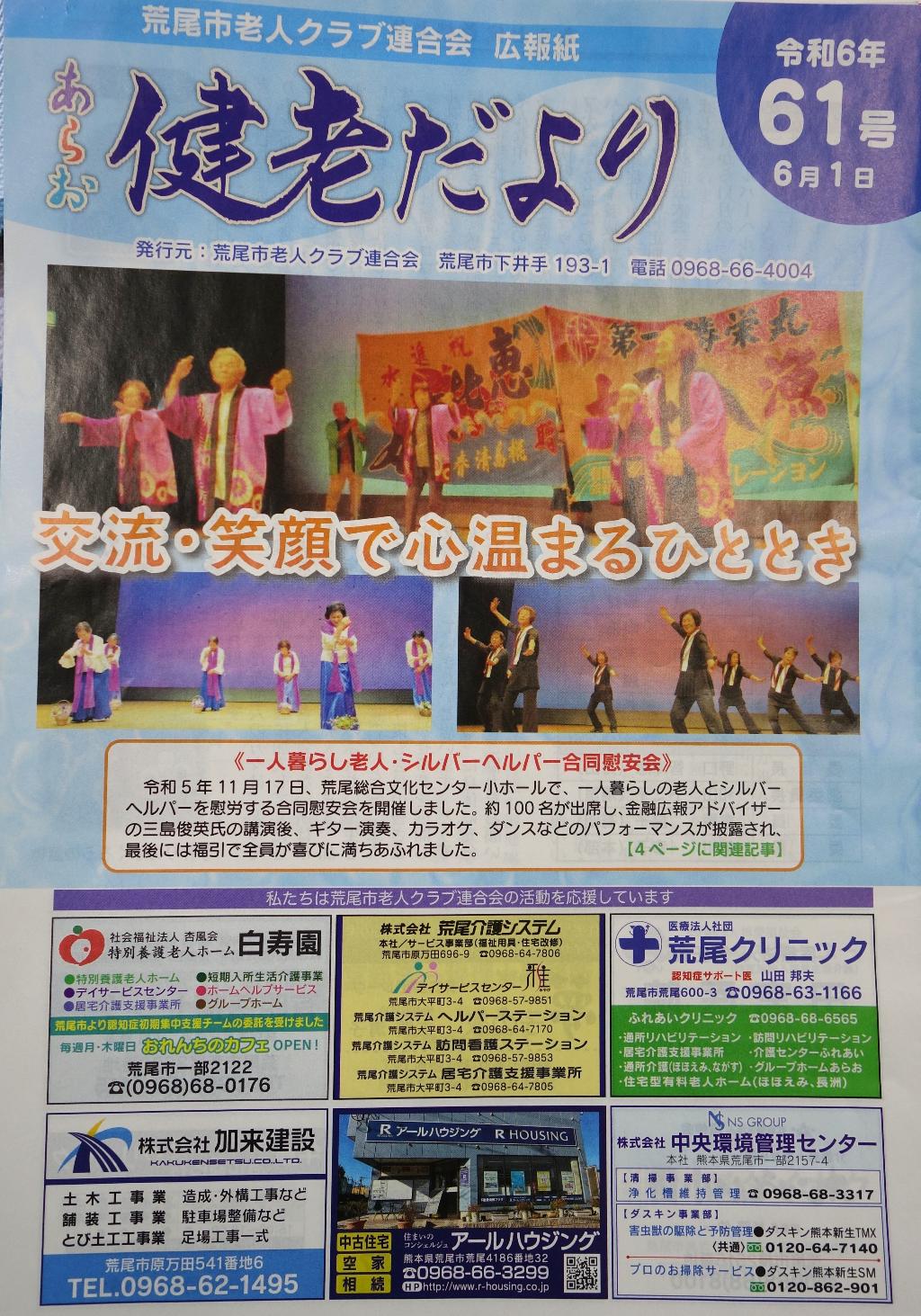 市老連の広報紙”健老だより”の発行によって市老連の事業を荒尾市の皆さんに周知出来、市老連の活動に理解…