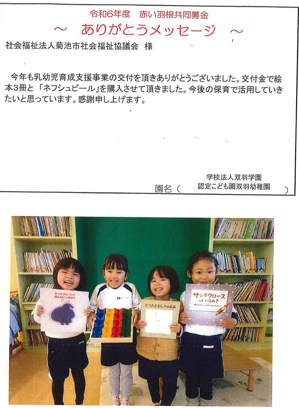 本年も乳幼児育成支援事業の交付を頂きありがとうございました。交付金で絵本3冊と「ネフシュピール」を購…